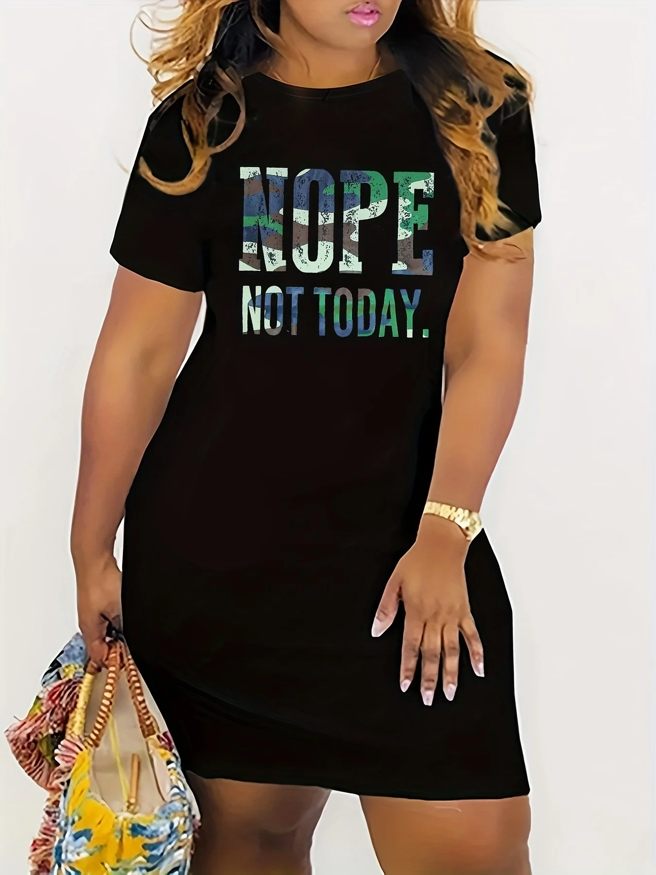 Nope Not Today Printing Dress, Casual Crew Neck Short Sleeve Stretchy Wear Dress, Women's Comfort Nightdress Clothing